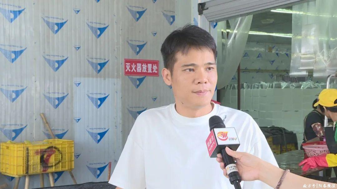 【采访】荔枝种植户 卢世锋:阳春春城、岗美隆岗村、那排村全部都交货到这里,这里稳定、销路多、不挑果,多少荔枝都要。价格也比较高,隆岗村那边收购价五块三,这里收购价六块,不愁销路,放在这里卖就行。我种植有60亩荔枝,荔枝年收入一般都有十几万。